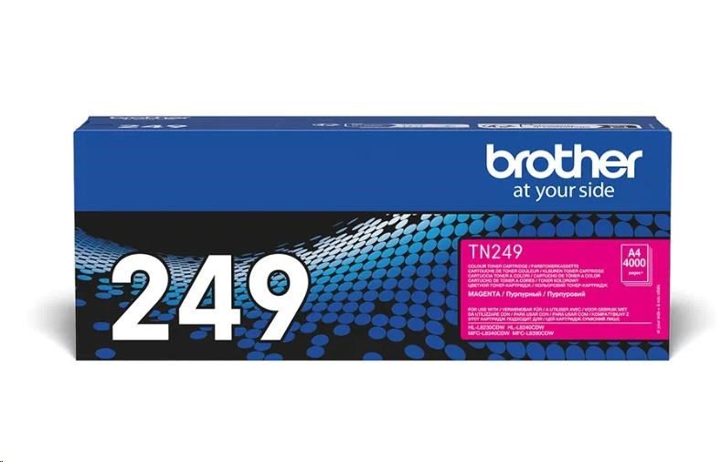 BROTHER Toner TN-249M - 4 000 stranTisková technologie:Laserová; Typ produktu spotřebního materiálu:Barevná cartridge/toner/páska.