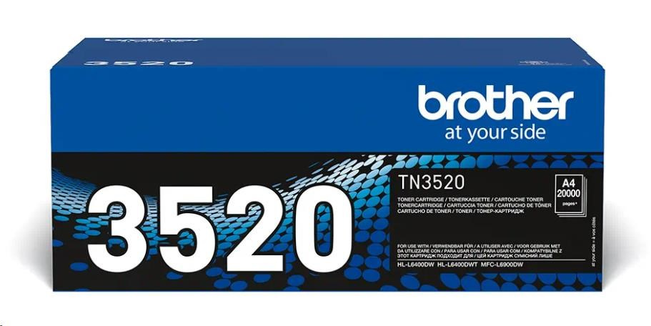 BROTHER Toner TN-3520 ( HL-L6400DW,MFC-L6900DW, 20 000 str. A4)Tisková technologie:Laserová; Typ produktu spotřebního materiálu:Černá cartridge/toner/páska.