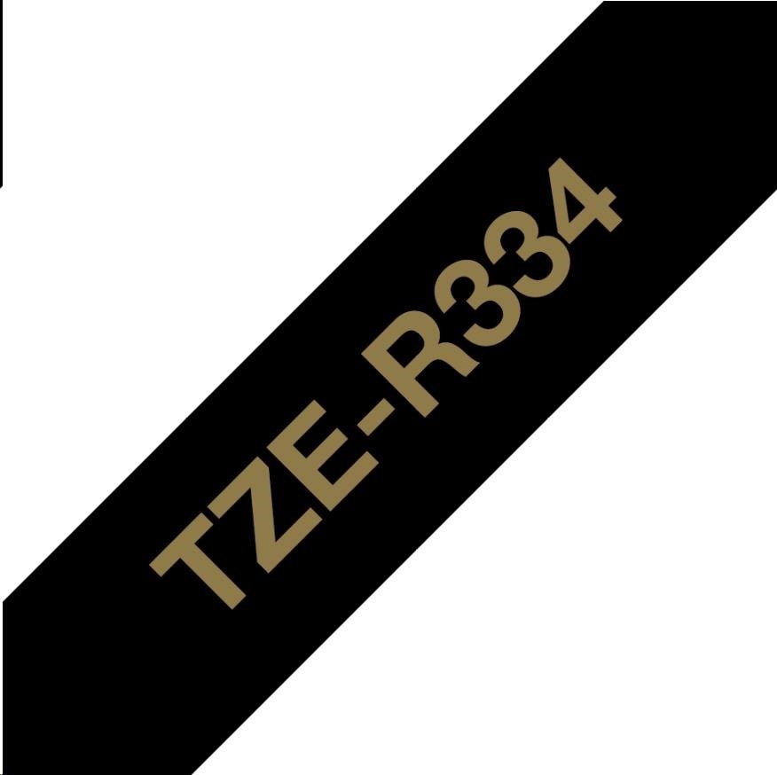 BROTHER TZE-R334 - kazeta TZ šířky 12mm, TEXTILNÍ páska 4m- pro tvorbu dárků - NELEPÍCÍ - ČERNÁ PÁSKA, ZLATÝ POTISK goldTyp produktu spotřebního materiálu:Ostatní spotřební materiál (válec, fuser apod.).