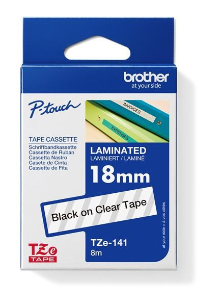BROTHER TZE141 - kazeta TZ šířky 18mm, laminovaná TZE-141, průsvitná/černé písmoBROTHER kazeta TZ šířky 18mm, laminovaná TZE-141, průsvitná / černá.