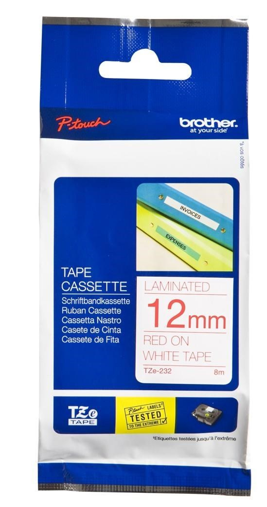 BROTHER TZE232 - kazeta TZ šířky 12mm, laminovaná TZE-232, bílá/červené písmoBROTHER kazeta TZ šířky 12mm, laminovaná TZE-232, bílá / červená.