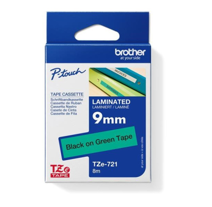 BROTHER TZE721 - kazeta TZ šířky 9mm, laminovaná TZE-721, zelená/černé písmoBROTHER kazeta TZ šířky 9mm, laminovaná TZE-721, zelená / černá.