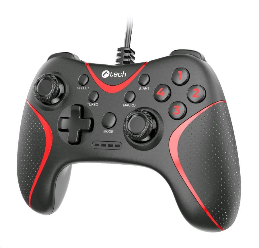 Gamepad C-TECH Theon pro PC/PS3, 2 programovatelná makro tlačítka, 2x analog, X-input, vibrační, 1,8m kabel, USB