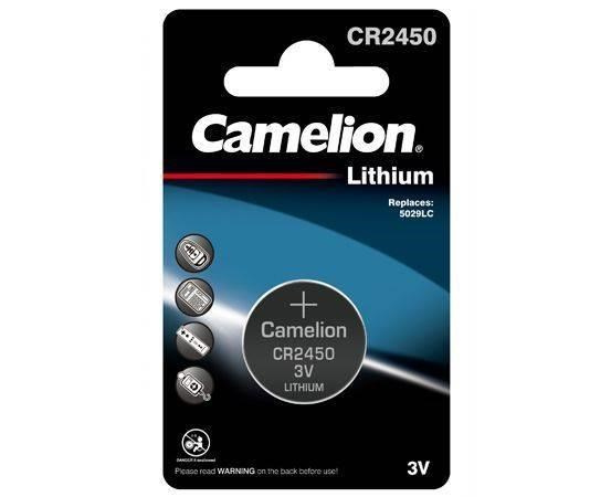 Camelion CR2450Produkt:Baterie; Typ baterie:Jednorázová; Velikost článku:Knoflíková; Napětí (V):3; Typ článku:Lithiový; Obsah balení:1.