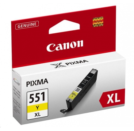 Canon CARTRIDGE CLI-551Y XL žlutá pro Pixma iP, Pixma iX, Pixma MG a Pixma MX 6850, 725x, 925, 8750 (695 str.)Tisková technologie:Inkoustová; Typ produktu spotřebního materiálu:Barevná cartridge/toner/páska.