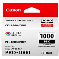 Canon CARTRIDGE PFI-1000PBK photo černá pro ImagePROGRAF PRO-1000 (256 str.)Tisková technologie:Inkoustová; Typ produktu spotřebního materiálu:Černá cartridge/toner/páska.