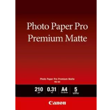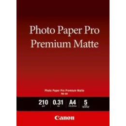 Canon fotopapír PREMIUM MATTE PM-101, A4, 20ks, 210g/mTyp papíru:Fotografický; Maximální formát tisku/média:A4; Gramáž (g/m2):200-249; Tisková technologie:Inkoustová.
