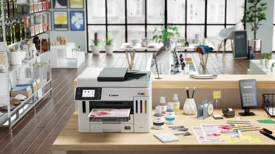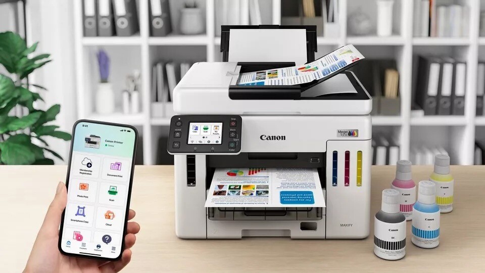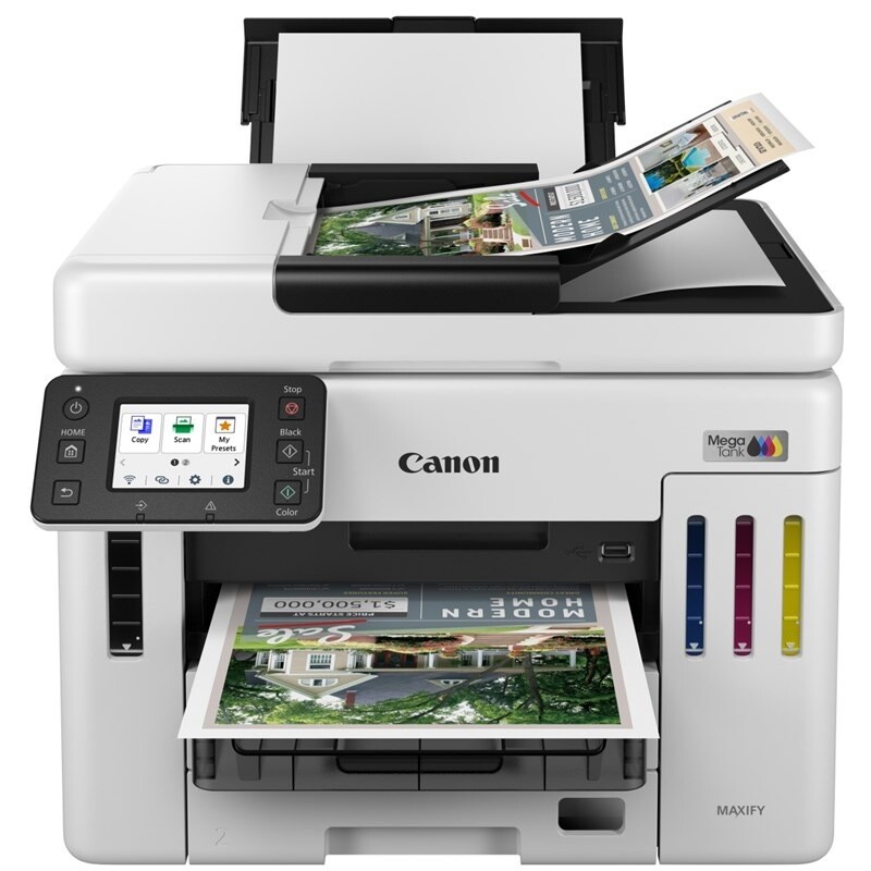 Součástí výbavy tiskárny Canon je automatický podavač dokumentů na 50 listů, takže tisk bude rychlejší než kdy dřív. Zároveň můžete počítat s jednoprůchodovým oboustranným skenováním, výklopným barevným dotykovým displejem o velikost 6,9 cm a zásobníkem papírů až na 600 stran. Tiskárna pak zvládne vytisknout i banner o délce až 1,2 metru.