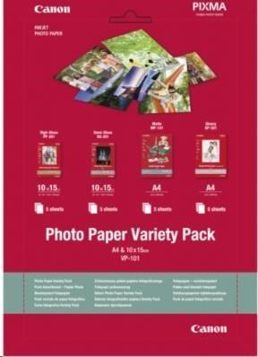 Canon PAPÍR VP-101 A4 & 10x15Typ papíru:Fotografický; Maximální formát tisku/média:10 x 15 cm; Tisková technologie:Inkoustová.
