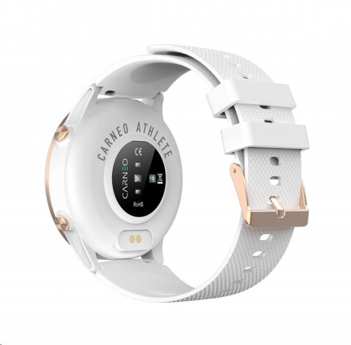 CARNEO Athlete GPS gold24hodinový režim • Budík • Časovač • Datum • Den v týdnu • Kalendář • Osvětlení • Stopky • Ukazatel data • Vibrace • Čeština • Slovenština • Angličtina • Kompatibilní s Android, iOS • Bluetooth • Silikonový řemínek • Notifikace z telefonu.