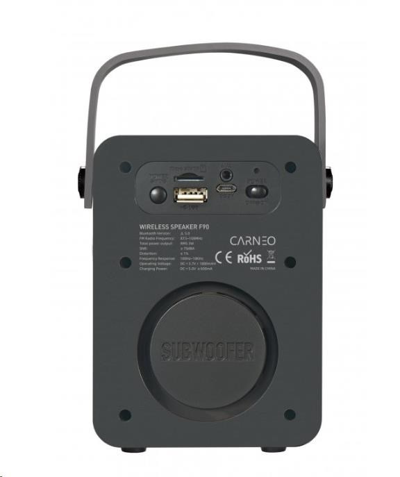 CARNEO F90 FM rádio, bluetooth reproduktor, black/woodRádio • USB-A • Bluetooth • Jack 3,5 mm • Síťové 220V • Rádio příjem: FM • Méně než 10 W.