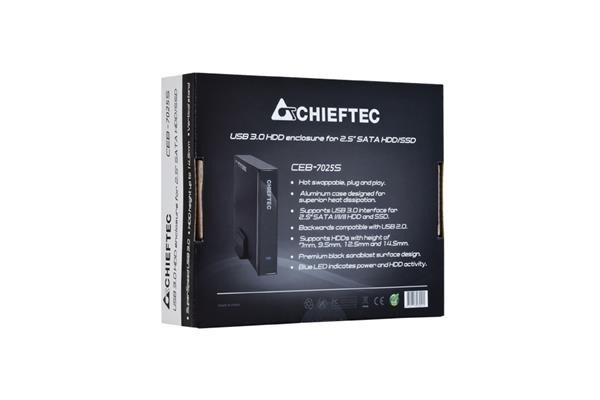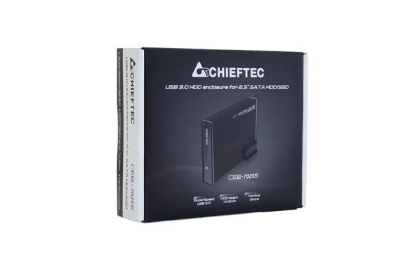 CHIEFTEC externí rámeček na SATA HDD 2,5" (max. 14.5mm), USB3.0, aluminiumTyp příslušenství:Externí boxy/rámečky.