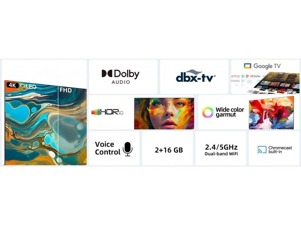 | SMART funkce: | Google Assistant, Chromecast built-in, Webový prohlížeč, HbbTV 2.0, Multi Screen |