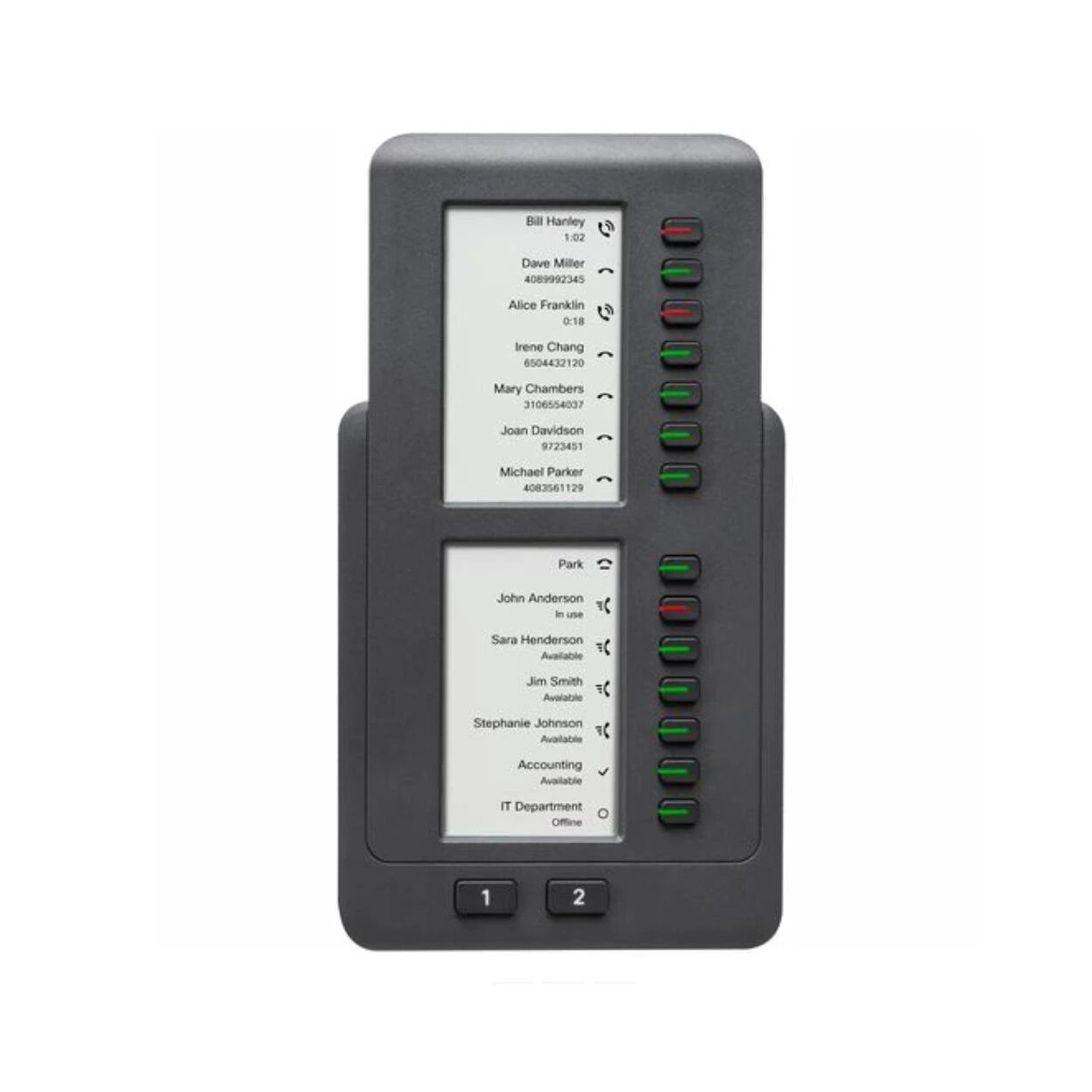 Expanzní jednotka Cisco IP Phone 6800 Key Expansion Module je určena pro rozšíření funkcí IP telefonu CP-6851, který podporuje až 4 SIP registrace a umožňuje připojení jednoho expanzního modulu. S touto expanzní jednotkou získáte 14 programovatelných tlačítek s možností přepínání mezi dvěma stranami, což znamená celkem 28 tlačítek pro snadný přístup k dalším funkcím telefonu.