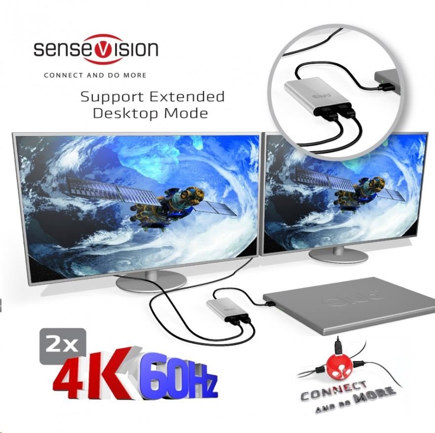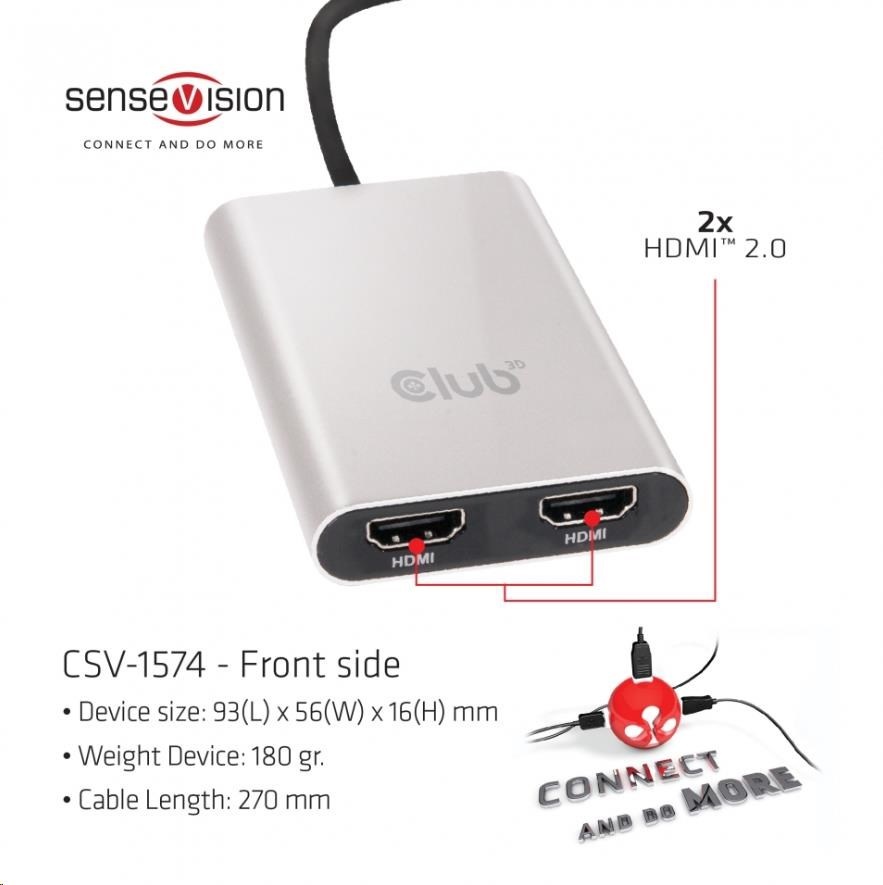 Club3D Adaptér Thunderbolt 3 na 2x HDMI 2.0 4K60Hz UHD