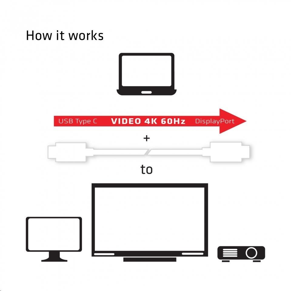 CAC-1517 Club 3D je převodník signálu DisplayPort ™. Adaptér USB 3.1 Type C na DisplayPort ™ 1.2 UHD je nejjednodušší řešení pro připojení zdrojového zařízení obsahující port USB 3.1 typu C s alternativním režimem DisplayPort ™ k (U)HD monitoru, televizoru nebo projektoru s podporou rozhraní DisplayPort ™ 1.2. Napájený portem USB typu C adaptér nevyžaduje žádné externí napájení a je ideální pro použití s nejnovějšími notebooky / MacBookem (Pro) a tablety.