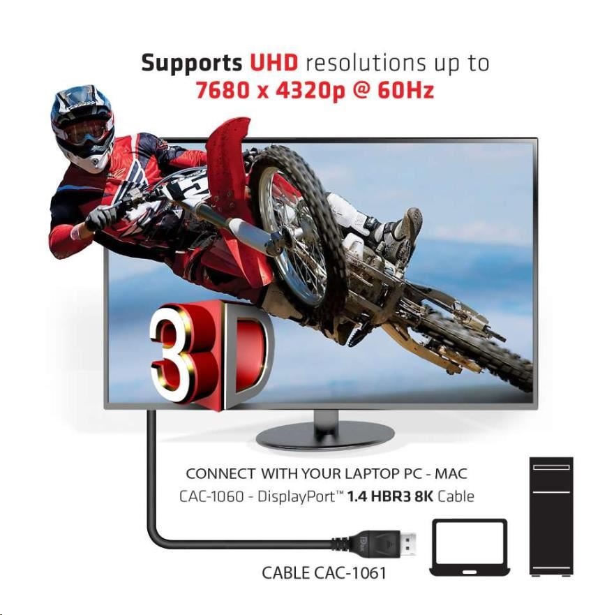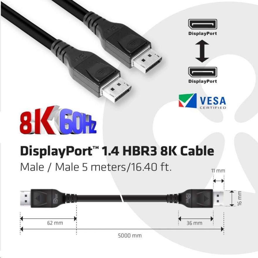 • Club 3D DisplayPort™ 1.4 HBR3 8K Cable