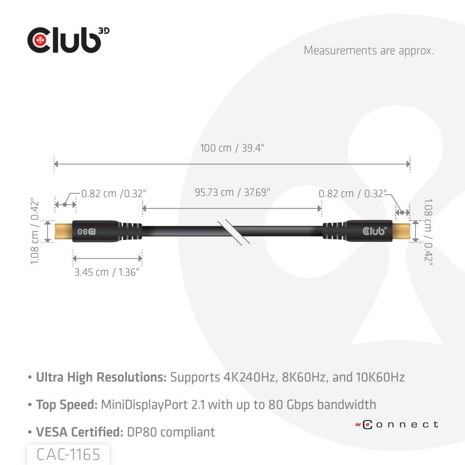 Club3D Kabel MiniDisplayPort 2.1 Certifikovaný, 10K60Hz, DSC1.2, UHBR10, 1m