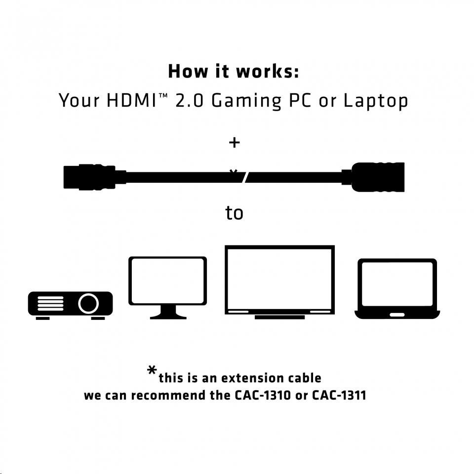 Club3D Kabel prodlužovací HDMI 2.0, 4K60Hz UHD (M/F), 3mSpecifikace kabelu / redukce:Adaptér, Redukce.