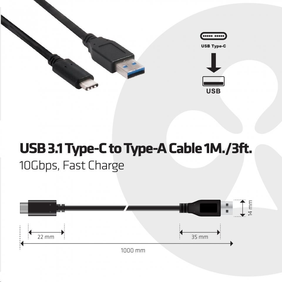 Club-3D USB 3.1 Type-C to Type-A Cable 10Gbps PD 60W M/M 1m/3ft