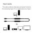 This cable combines video,data and power functions for connecting USB Type C PC or mobile device to a USB Type C display/VR/HardDrive/