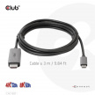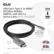Club3D kabel USB-C na HDMI, 4K120Hz 8K60Hz HDR10 s DSC1.2, Aktivní kabel, M/M, 3m