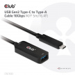 The Club 3D CAC-1536 USB Gen2 Type-C to Type-A Cable 10Gbps M/F 5m/16.4ft cable connects your Notebook, Tablet or Phone with USB Type-C output to your favorite existing Peripherals, Accessories and Chargers featuring the common USB Type-A plug. It enables Data and Power over a single cable and both ways. This cable supports USB 3.2 Gen 2. SuperSpeed+ data up to 10Gbps and up to 900mA output for Downstream charging or powering your USB Type-A enabled Notebook, Tablet or Smartphone.