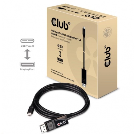 Club3D Kabel USB Typ C na DisplayPort 1.4 8K 60Hz (M/M), 1,8mSpecifikace kabelu / redukce:Adaptér, Redukce.