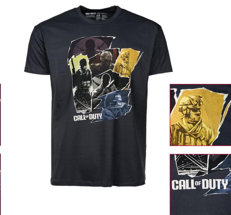 Tričko je ozdobeno vysoce kvalitním digitálním potiskem se stylovou koláží všech hlavních obrázků ze série Call of Duty, jež oslavuje její 20. výročí.