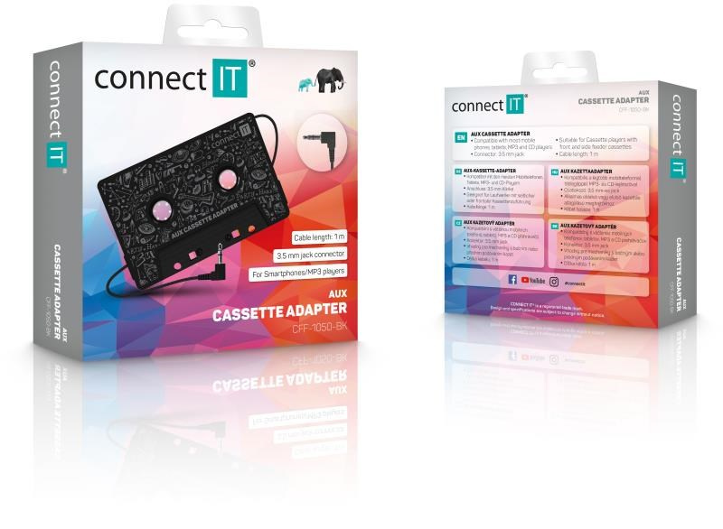 CONNECT IT AUX kazetový adaptér, 3,5 mm jack, černáSpecifikace kabelu / redukce:Jack / Cinch, Adaptér, Redukce.
