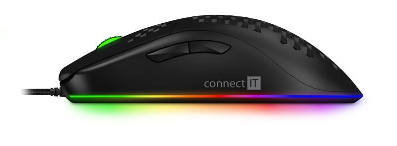 Kromě běžných funkcí je tato myš unikátní svojí odlehčenou konstrukcí. Díky perforaci těla myši a tlačítek speciálním hexagonovým tvarem, kterým došlo ke snížení váhy myši o 50%. Tento typ perforace zajistí maximální grip a stabilitu při dlouhodobém hraní. K této myši je dodáván software ke stažení zcela zdarma na stránkách www.connectit-europe.com. Samozřejmostí je u této série prémiový oplet přívodního kabelu a pozlacený USB konektor.