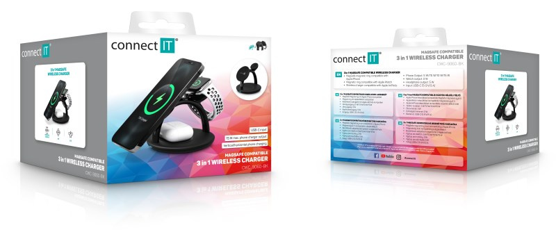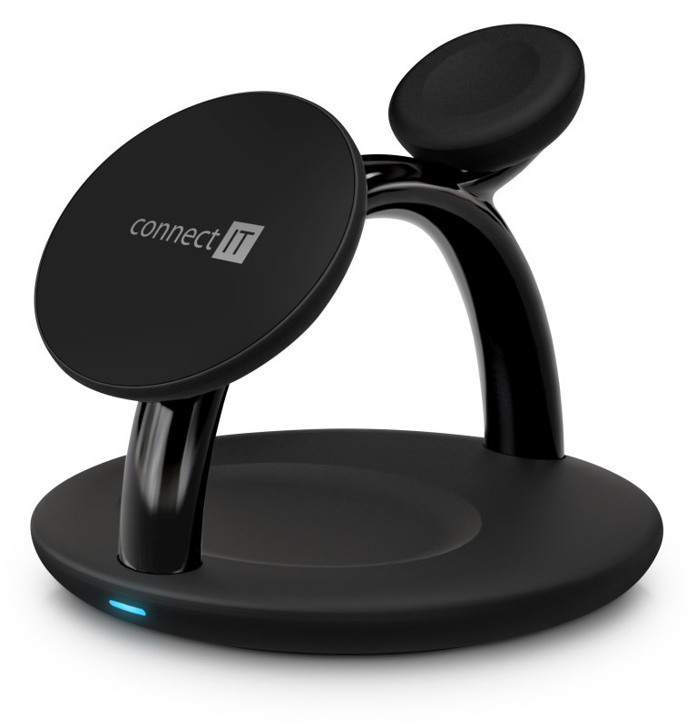 CONNECT IT Bezdrátová nabíječka 3v1 MultiCharge MagSafe pro IPhone, Apple Watch a AirPods, 15 W, ČernáZařízení:Mobil; Druh příslušenství:Nabíječky.