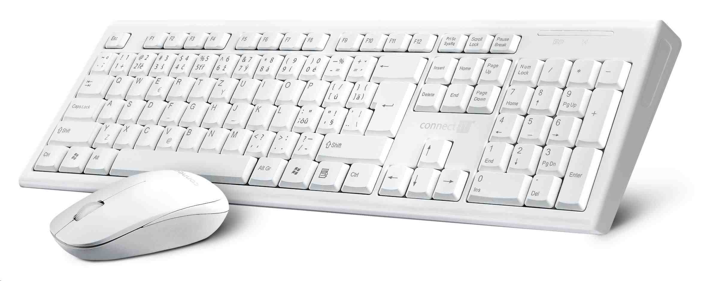 CONNECT IT Combo bezdrátová bílá klávesnice + myš, (+1x AAA +1x AA baterie zdarma), CZ + SK layout