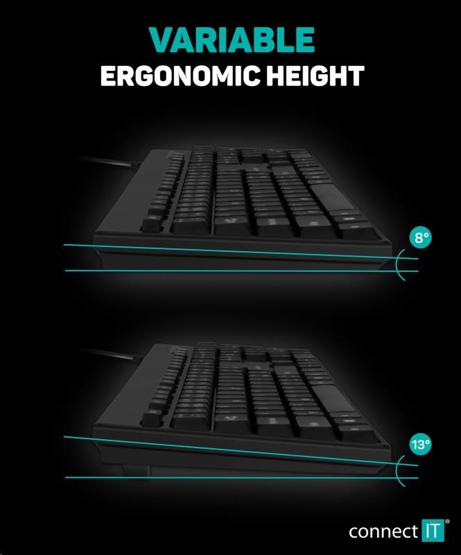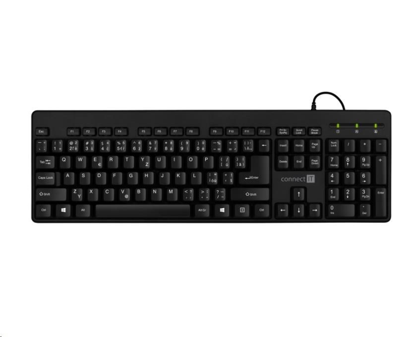 CONNECT IT Combo drátová černá klávesnice + myš, CZ + SK layoutTyp klávesnice:Membránová; Rozhraní klávesnice:Drátová USB; Lokalizace klávesnice:CZ/SK.