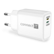 CONNECT IT Duplex nabíjecí adaptér 1xLightning, 1×USB-C, 20W, 1xLightning - USB-C kabel, bílá
