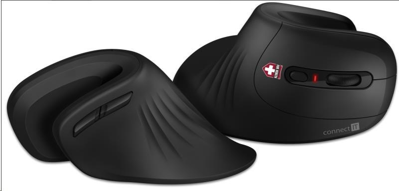 CONNECT IT FOR HEALTH ergonomická vertikální myš, (+ 1x AA baterie zdarma), bezdrátová, ČERNÁ