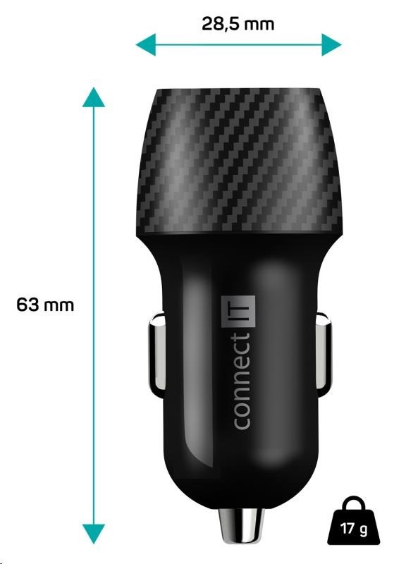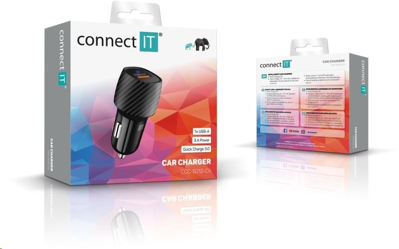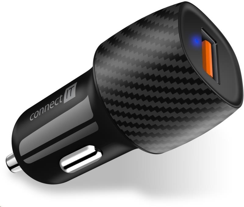 CONNECT IT InCarz QUICK CHARGE 3.0 nabíječka do auta, 1x USB-A, 3 A, carbonZařízení:Mobil; Druh příslušenství:Nabíječky.