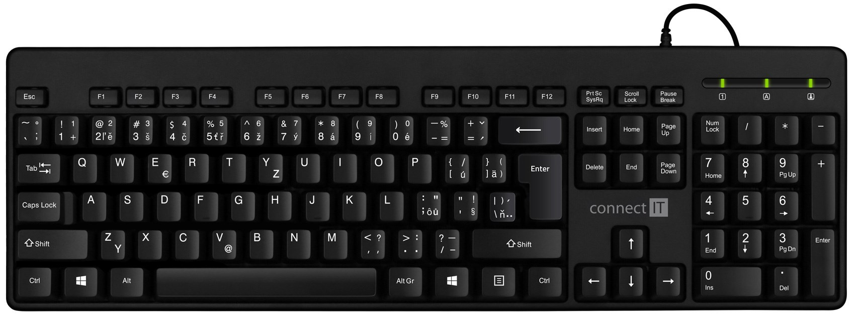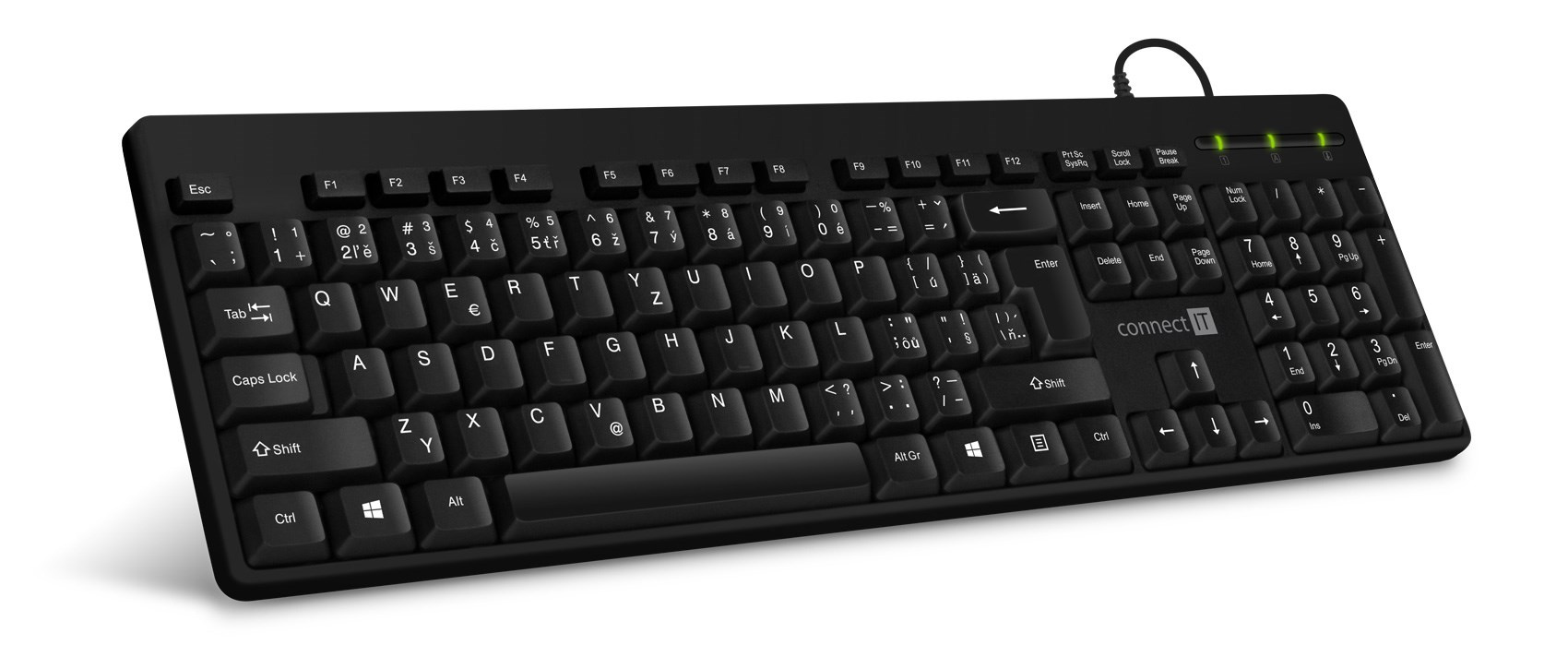 CONNECT IT Klávesnice CI-58 standard, USB, černáTyp klávesnice:Membránová; Rozhraní klávesnice:Drátová USB; Lokalizace klávesnice:CZ.