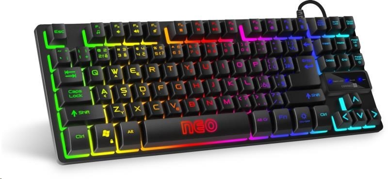 Profesionální gamingová klávesnice NEO Compact je unikátní svým TKL (Ten Key Less) designem, který je bez numerické části a díky tomu vzniká na stole větší prostor pro pohyb myši na podložce. Tato klávesnice je v českém a slovenském layoutu s 2 módy barevného rainbow podsvícení a třístupňovou regulací intenzity podsvícení.