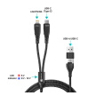 Univerzální nabíjecí kabel 4v1 pro nabíjení zařízení s konektory 1x USB-C a 1x Lightning se vstupním konektrom USB-C a redukcí na USB-A. Umožňuje nabíjení až dvou zařízení současně s podporou rychlého nabíjení pomocí max. proudového toku 5 A. Speciální manžetová nadstavba konektorů zaručuje lepší přístupnost k nabíjecím zdířkám mobilních telefonů v pouzdrech.