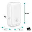 Světlo disponuje posuvníkem, který umožňuje zapnout/vypnout světlo a nastavit režim automatického zapnutí při zaznamenání pohybu v šeru. Světlo stačí jednoduše zapojit do libovolné zásuvky a při příkonu 0,80 W se nemusíte bát spotřeby elektrické energie. LED zdroj světla disponuje světelným tokem 30 lumenů.