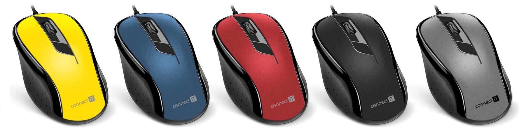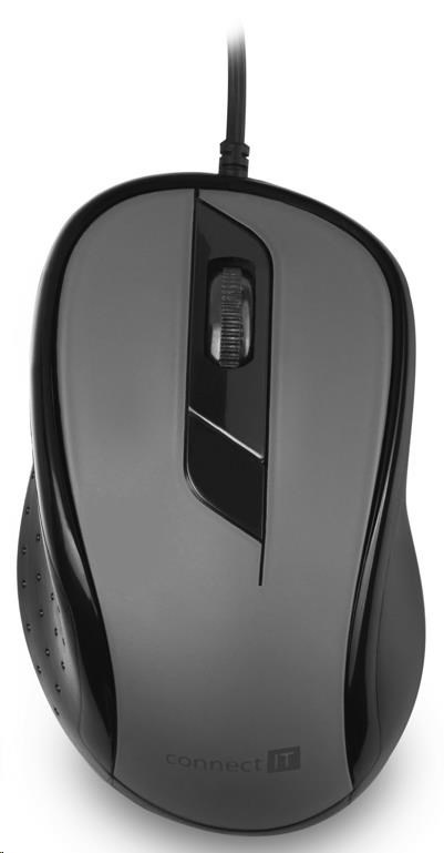 CONNECT IT Optická myš, USB, šedáRozhraní myši:Drátová USB; Druh myši:Optická; Specifikace myši:S kolečkem.