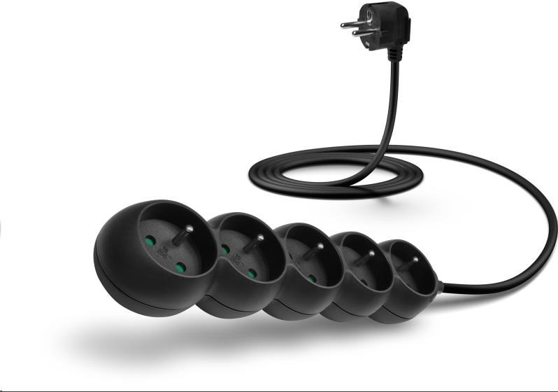 CONNECT IT prodlužovací kabel 230 V, 5 zásuvek, 2 m, bez vypínače (černý)Specifikace kabelu / redukce:Prodlužovací 230V.