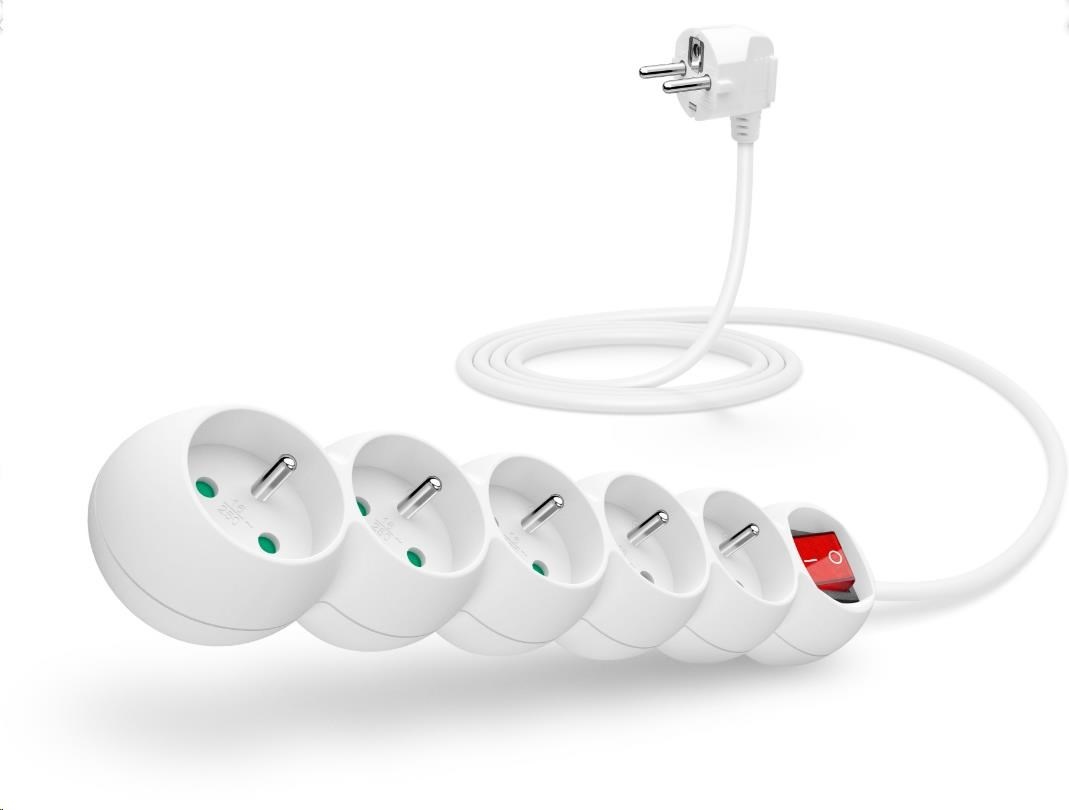 CONNECT IT prodlužovací kabel 230 V, 5 zásuvek, 2 m, s vypínačem (bílý)