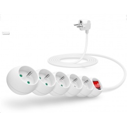 Prodlužovací kabelový přívod na 230V je vybaven hlavním síťovým vypínačem, který při vypnutí zcela odpojí od přívodu elektrické energie všechny zapojené spotřebiče najednou. Extra výbavou je dětská ochrana všech zásuvek – zásuvky jsou přístupné pouze v případě zasunutí obou vidlic najednou, nelze tedy zasunout jednotlivě např. pouze šroubovák nebo pletací jehlici.