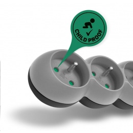 - Dětská ochrana všech zásuvek (zásuvky jsou přístupné pouze v případě zasunutí obou vidlic najednou, nelze tedy zasunout jednotlivě např.