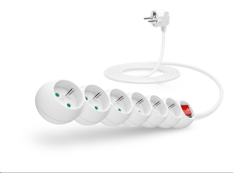 CONNECT IT prodlužovací kabel 230 V, 6 zásuvek, 3 m, s vypínačem (bílý)