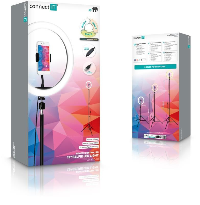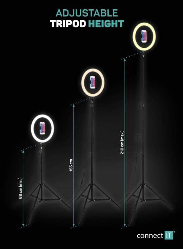 CONNECT IT Selfie12Ring kruhové 12" LED světlo + stativ 2,1 mZařízení:Mobil; Druh příslušenství:Držáky.