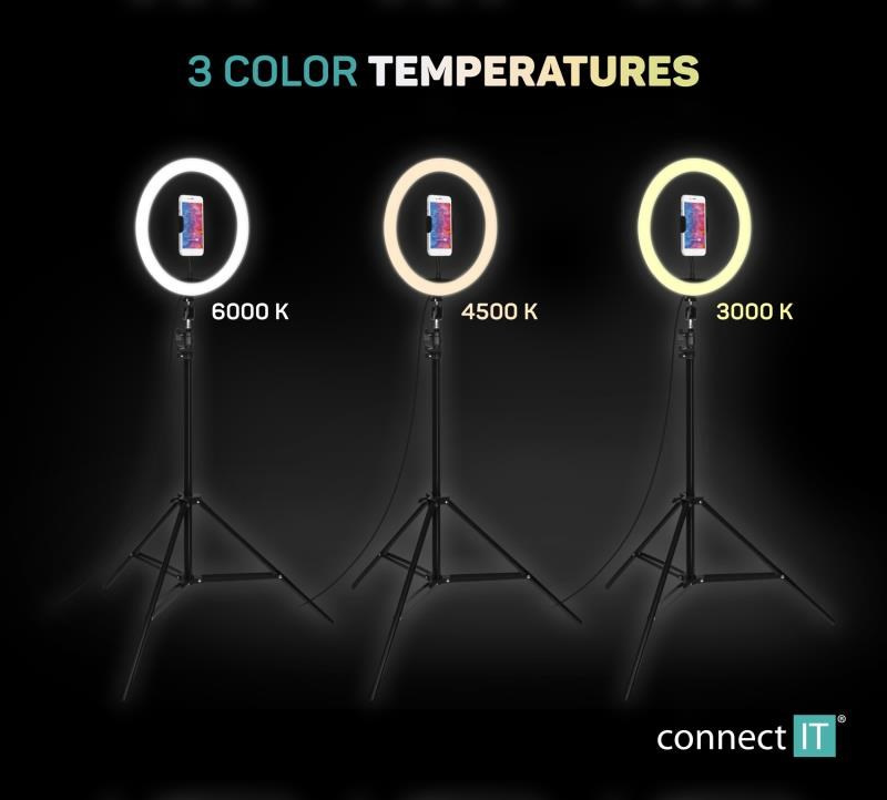CONNECT IT Selfie12Ring kruhové 12" LED světlo + stativ 2,1 m