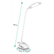 Díky flexibilnímu rameni nastavíte dokonalý úhel pro jakoukoliv práci. Lampička disponuje praktickým dotykovým spínačem, který umožňuje zapnout/vypnout lampu a nastavit 3 úrovně jasu světla. Pomocí klipu můžete lampičku umístit nejen na Váš pracovní stůl, ale například na poličku, noční stolek či rám postele.